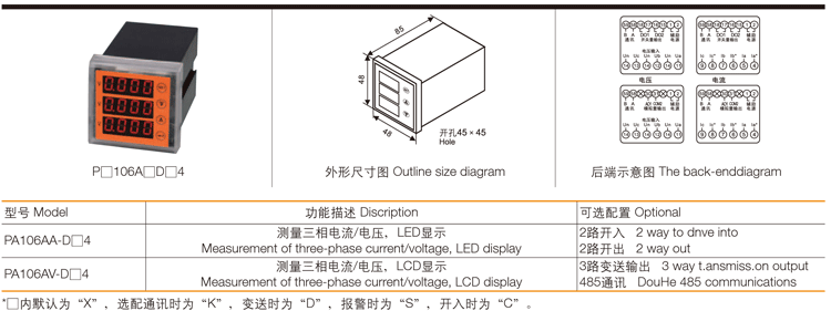 其它:1路变送,4-20mA对应A相0-5A