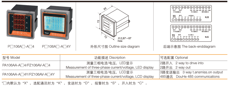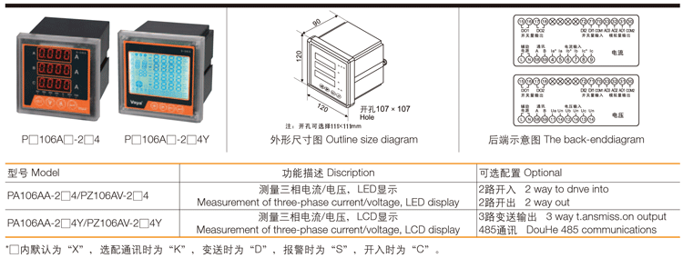 X系列可编程电测仪表,主要是电网中对电流、电压、功率、频率、功率因素等电参量的测量和显示,变比键盘可设,具有显示直观、精度高、稳定性好、抗震动等优点,可用于波形严重畸变的场所。