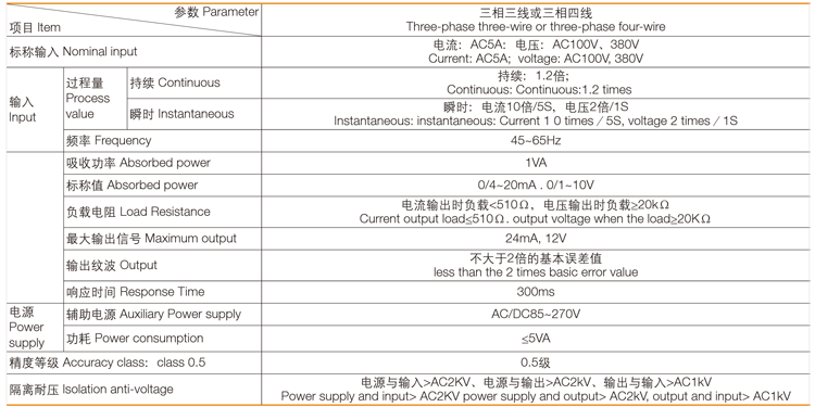 概述 多功能变送器主要是将测量的三相电流、电压、功率因数、有功功率、无功功率、频率信号,隔离输出模拟信号的装置。