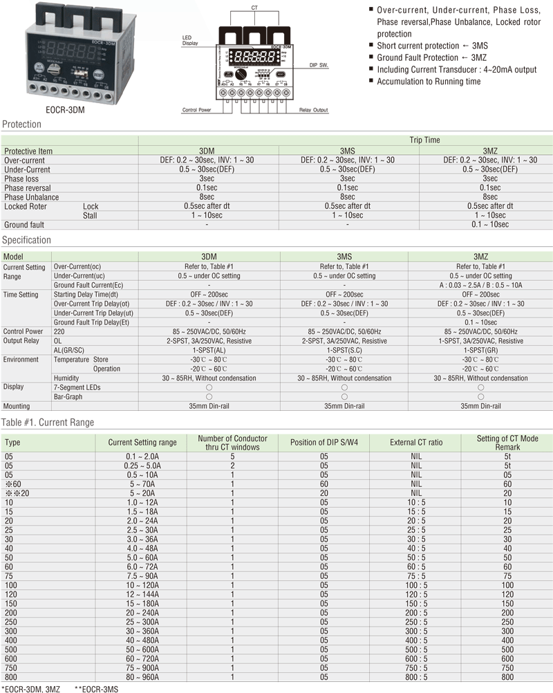 EOCR-3DM/3MS/3MZ Digital Overcurrent Relay