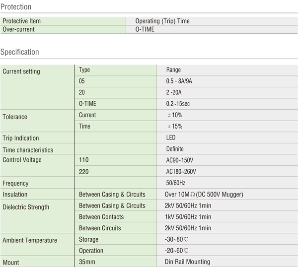 ● Single-phase Over Current Protection● Trip Indication LED● Definite Trip time Characteristic● Mamual (instantaneous)/Electrical (Remote) Reset