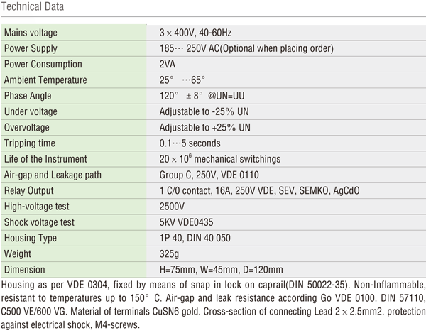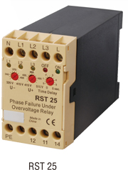 The electronic phase relay RST 25 offers phase, philure shift, phase flashing, asymmetric, Phase sequence and also under and overvoltage control.