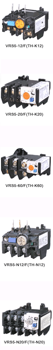VRS5(TH-K/JRS5)Реле тепловой перегрузки (именуемое в дальнейшем тепловое реле) применяется переменный ток50Hz、номинальное напряжение660V、электронный ток0.28-105A охраняющее перегрузку и перерыв фазного двигателя переменного тока во время долговременной работы или перерыв долговременной работы.