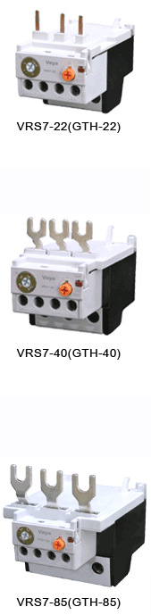 VRS7(GTH)Реле тепловой перегрузки (именуемое в дальнейшем тепловое реле) применяется переменный ток50Hz、номинальное напряжение690V、электронный ток0.1-85A охраняющее перегрузку и перерыв фазного двигателя переменного тока во время долговременной работы или перерыв долговременной работы.