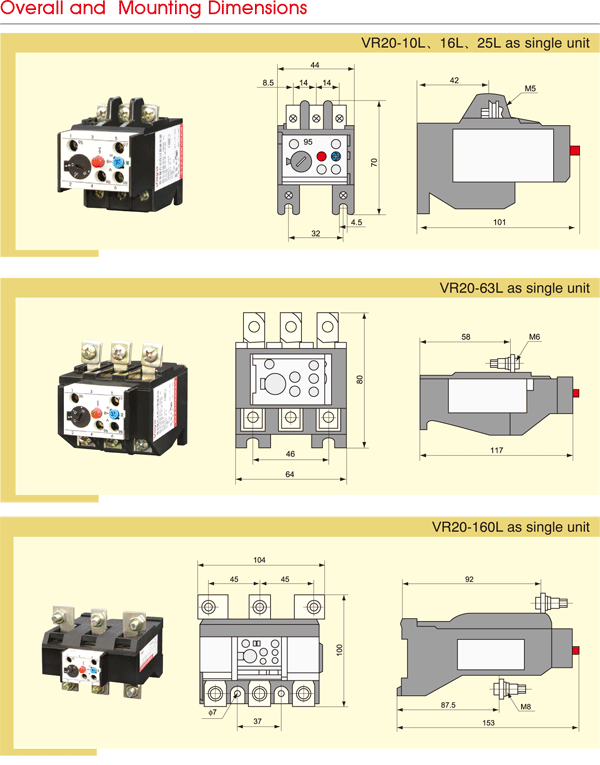 Вышеуказанное тепловое реле может монтировать по форме соединения и втыычки с контактором и тоже самостоятельно монтировать. VR20(JR20) -□L “L” означает самостаятельно монтировать