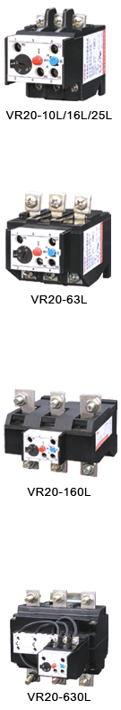 VR20(JR20) Реле тепловой перегрузки (именуемое в дальнейшем тепловое реле) применяется переменный ток50Hz/60Hz、номинальное напряжение660V、электронный ток0.16-630A охраняющее перегрузку и перерыв фазного двигателя переменного тока во время долговременной работы или перерыв долговременной работы.