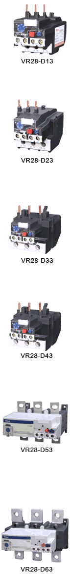 VR28(LR2-JR28) Реле тепловой перегрузки (именуемое в дальнейшем тепловое реле) применяется переменный ток50Hz/60Hz、номинальное напряжение690V、электронный ток0.1-150A охраняющее перегрузку и перерыв фазного двигателя переменного тока во время долговременной работы или перерыв долговременной работы.