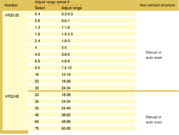 VR32 Реле тепловой перегрузки (именуемое в дальнейшем тепловое реле) применяется переменный ток50Hz/60Hz、номинальное напряжение690V、электронный ток0.3-95A охраняющее перегрузку и перерыв фазного двигателя переменного тока во время долговременной работы или перерыв долговременной работы.